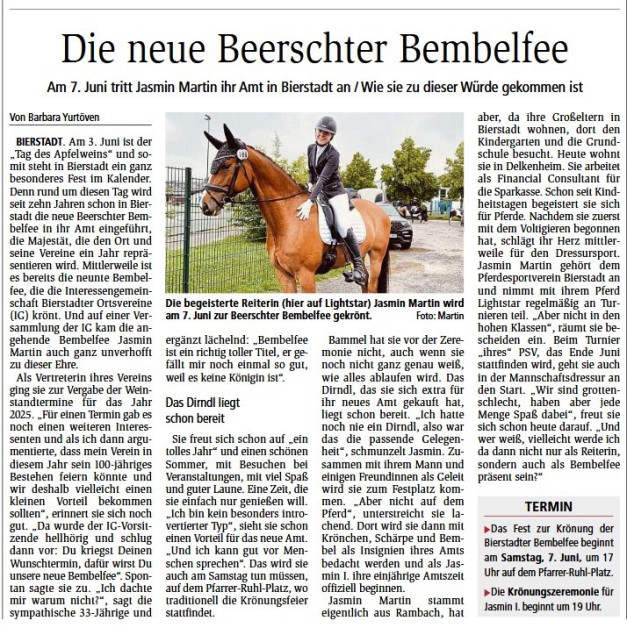 Es ist vollbracht Conny die Erste aus den Reihen des GV Frohsinn führt das Amt der bezaubernden Beerschter Bembelfee für die Dauer eines Jahres aus.
