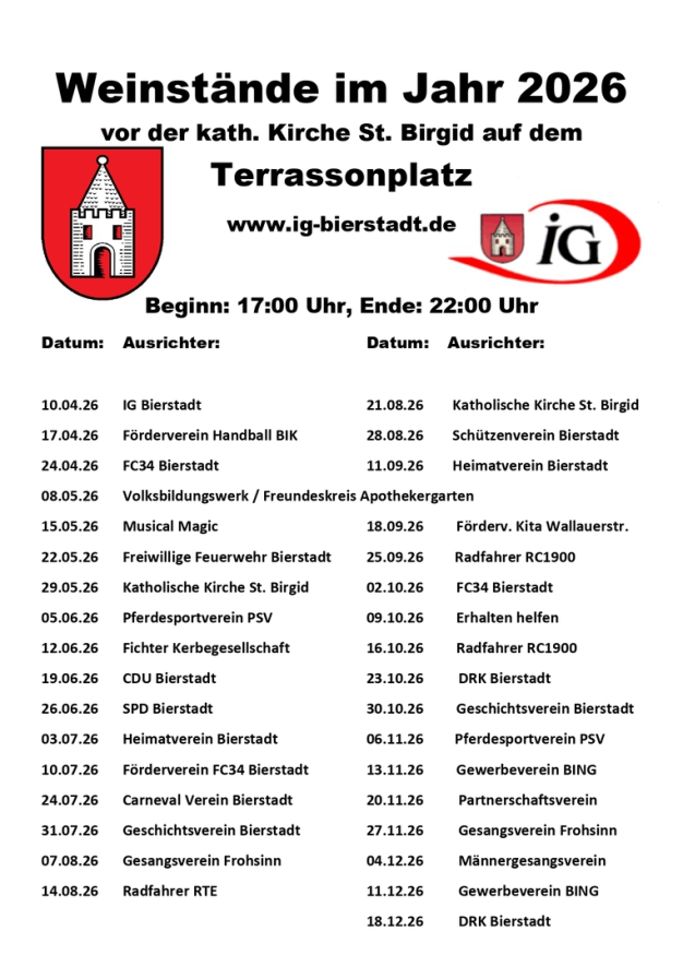 Wenden Sie sich für Ihre Anfragen bitte an folgende Ansprechpartner der IG Bierstadt e.V.: